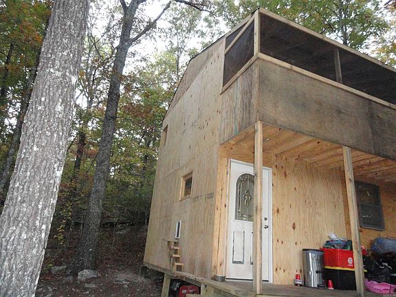 Off grid, solar powered, unfinished cabin on 10 acres in the Ozark Mountains of North Central Arkansas. This property has a 2-story cabin, roughed in and in the dry. Finish it to your liking. Spring water is available near the cabin and could be developed to provide water to cabin. The solar panels and battery bank is new and operational, and the cabin is partially wired with lights, outlets and a regular sized refrigerator. There is also a regular sized propane cook stove for your cooking convenience. At the present time, there is an outdoor, on-demand, propane water heater for outdoor showering. The upstairs has screened-in covered porch. The property is filled with trees except for what has been cleared for the cabin area. The property also has a seasonal creek that should hold pockets of water even in the dry part of the season. Use the property for a deer hunting camp or live full time off grid. No septic system is in place at this time.
