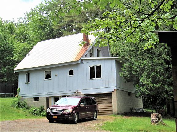 This home is on a secluded 1 acre lot on Route 8 in Lake Pleasant. It is a 1296 square foot cape cod with 3 bedrooms and 1 1/2 baths. There is a circular driveway which is nice for hauling snowmobiles. The property is located halfway between Speculator and Piseco which gives you lots of options for recreation and dining. It has propane heat and a wood stove in the basement that heats the whole house when you are there. There is a one car attached garage. At $165,000 you can afford to make this house into your dream home.