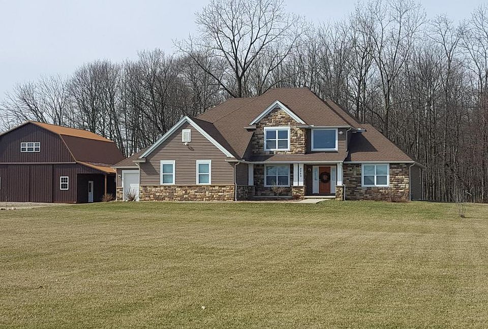 Large 2-story home w/1st floor master. 4-car attached garage. Expansive kitchen w/stainless steel appliances, 10'x5' island, granite counters, tile back splash & pantry. Master bdrm w/double closet, tile walk-in shower & heated floor. Custom built staircase w/rod iron spindles. Crown molding. 9'ceilings. Hardwood acai floors. Delco water. Full basement w/egress windows. Zoned geothermal heating. Transferable builder warranty. 40x32 building w/concrete floor & work shop area w/copper roof & downspouts. Covered porch. Attic storage. 1200 sq.ft. stamped concrete patio w/hot tub. Seller requesting property to be marketed for 7 days from list date. Highest and best offers will be considered at 12nn on 3/12/18. Please make offers with a time for acceptance such as the next business day.
