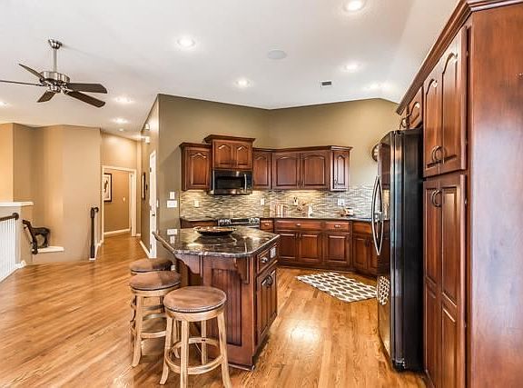 Absolutely fantastic, very open, spacious floorplan. ALL HARDWOODS except wlk-out level, beautiful new stainmaster stair carpet, big kitchen: granite island, black stainless appls, pantry. "2" living areas, 1st flr: FP, planta. shutters + fam rm w/FP in wlk-out, BR5 a perfect office w/built-ins on sep.level. Big MBR: huge closet, lge MBA double separate sinks. Lge Trex deck off kit. w/under deck ceiling for a dry, cozy patio below + 2nd patio for firepit. Oversized garage, wider+deeper. Fenced & sprinkler system.
