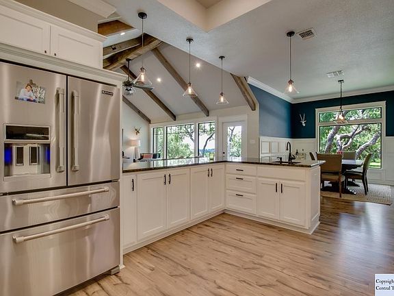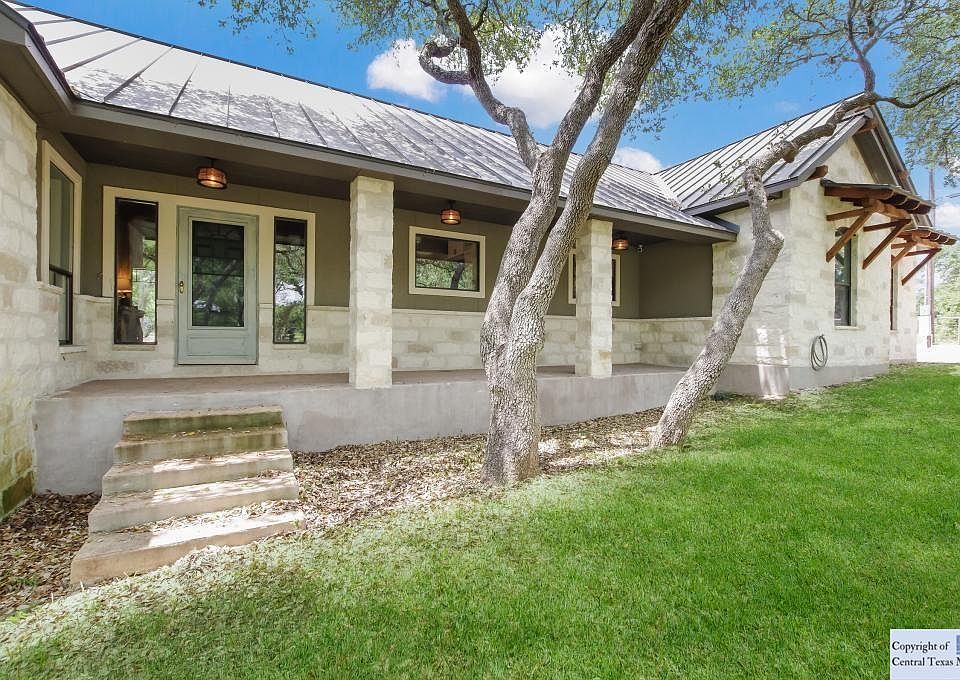 Hill Country Heaven on this rambling ~9 acres w/ custom 4/3.5 home w/ pool, hot tub, shop, RV parking & a view for days. 2015 Complete Renovation. Kitchen is Chef's delight w/ top of the line Gas Range, H20 on demand, Copper Under mount Farm Sink, Stainless appliances, custom cabinets, granite counters, tile backsplash, breakfast bar. Open living concept. Vaulted Ceilings w/ eye catching wooden beams. Floor to Ceiling Windows bringing the outside in..Crown Molding & trayed ceilings throughout. Master Suite Boasts His/Her Closets, large walk-in shower. Guest 4th bdrm w/ attached bath & outside access. Step into your backyard Sanctuary complete w/ a stunning view, 100's of Oak Trees, in-ground pool, hot tub, 40x60 Shop w/ elec., heat & H20. 25x50 RV/Boat Storage w/ 30 AMP hook up. On demand H2o, Sprinkler Sytm. Foam Insulated, Standing Seam Metal roof, completely fenced & under ground dog fence. 2 Trane HVAC units, Foam insulation. Oversized laundry w/ lots of storage & room for fridge.
