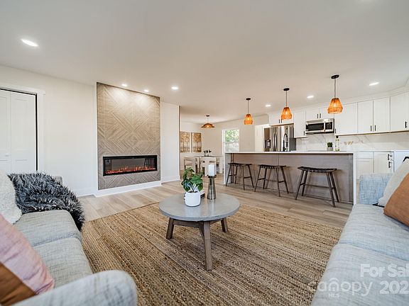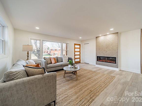In the heart of Charlotte you'll find this modern brick ranch in classic Westerly Hills. This charmer will wow you - from the freshly updated exterior to the open concept you step into at that gorgeous front door! Immediately you'll find a floor to ceiling porcelanosa fireplace wall that's both visually stunning and functional for heat. The beautiful new kitchen includes a quartz waterfall island, quartz backsplash & two-toned cabinetry. Throughout the home you'll find all new windows & lighting, new sliding patio door, new HVAC & new water heater. The large primary suite with ensuite bathroom features a quartz floating vanity, backlit mirror, tile flooring, oversized walk-in shower and walk-in closet. The laundry closet is tucked away behind a custom door, lending space for a stackable washer & dryer. Within a 5-10 min drive you'll find some of the BEST of Charlotte - Uptown for sports, concerts, theater & city life, CLT airport, Enderly Coffee, Noble Smoke & Pinky's Westside Grill.