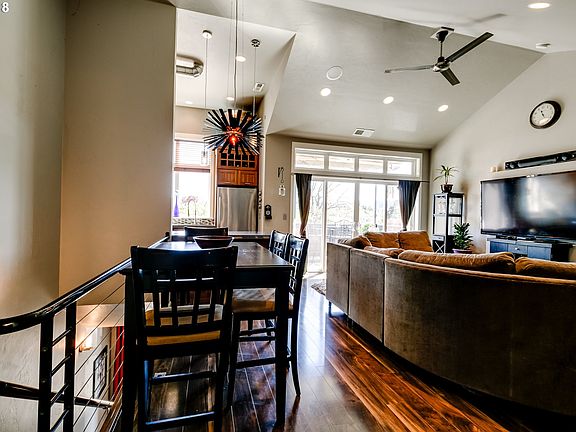 Modern, rare Jordan Iverson town-home in central Eugene w/thoughtful, executive finishes. 1252 feet, 2-bed/2.5 bath w/wood floors, sleek railing, gas furnace/on-demand water heater. Light filled & wired for sound. Stainless appliances and quartz counters. Ask a builder if this home can be built for this price. Good separation, cute outdoor patio/upper deck to take in mornings/evenings. Great storage, parking, office options and nooks.