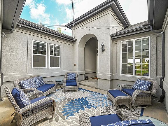Welcome home to this gorgeous raised ranch in the coveted Rockinghorse neighborhood of the Inspiration Community! Step inside through a beautiful courtyard entry. The courtyard has a custom storm door that provides a private outdoor escape from the elements. This meticulously cared for home has been freshly painted and provides blank slate ready for your personal touches. The large vaulted ceilings in the family room flood the space with natural light, creating a warm and inviting atmosphere. The gourmet kitchen boasts cherry cabinets and stainless steel appliances, with high end roll out cabinets, cabinet organizers and a large pantry. The primary bedroom features an enormous en-suite 5-piece bath and a large walk-in closet for all your storage needs. The bonus of this space is the pass through from the primary closet to the laundry room that provides easy access to the washer and dryer. Down the hall, there is a nice sized guest bedroom, a full bathroom and an office (which could easily be converted into a 4th bedroom with adding a closet). On the other side of the home, there is private additional bedroom and 3/4 bath. The huge unfinished walkout basement presents a fantastic opportunity to create the space of your dreams. Multiple outdoor entertaining areas include the inviting courtyard, a spacious covered deck, and a large paver patio and the home is surrounded by gorgeous landscaping. The attached 2-car garage offers easy access to your cars. An additional 1 car garage is appropriately sized to park your additional toys or simply use for storage. This home's ideal location provides easy access to the community park and pool. Downtown Parker is a quick 10-minute drive with restaurants and shopping close by and everything Southlands Mall has to offer is quickly at your fingertips. This home has easy access to E-470 makes commuting to get to Denver, DTC or the mountains a breeze. Welcome to your new home in Inspiration!