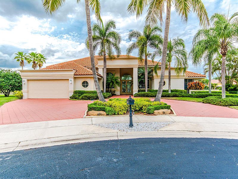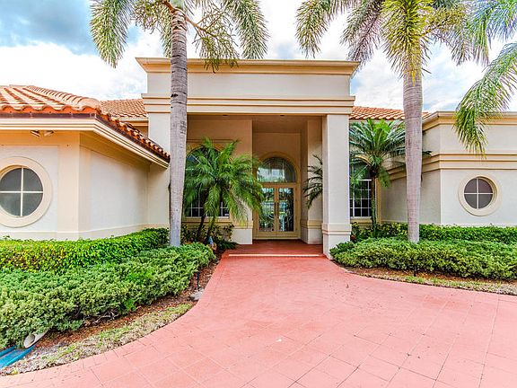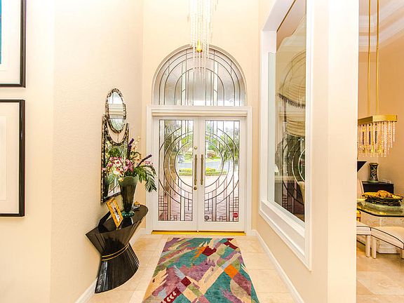 Premiere lakefront lot within Encantada Village boasts a custom built home with water views on 3 sides. Three bedrooms with en suite bathrooms, two half bathrooms, an office, formal living, dining and family rooms, wet bar, kitchen with counter seating and breakfast area. Soaring high ceilings, crown molding, built in closets, no detail spared. Newer roof, A/C, washer/dryer, whole house generator system, hurricane shutters this house has it all. Spacious patio and pool area overlooks the lake fountain!