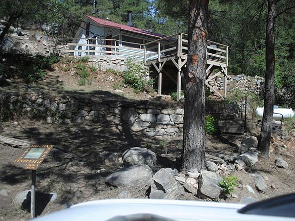 The historic Harrington House is a charm to behold.Lovingly remodeled inside and out. Master bedroom features two closets,elegant & spacious bath with all new fixtures,separate shower & tub,brand new flooring, Screened-in porch has been recently remodeled and adds another living room to the house. Fireplace is unique, massive and hand-built by stone masons back at the turn of the century.Kitchen is updated with newer cabinets & stove.Sleeps 6 comfortably!Cabin sits on 1/2 acre of land and is within very easy walking distance to downtown Crown King. House is on Philadelphia Water Company.This home is one of a kind! Listed on the CK Historical Society tour and featured in many books about the area. You can't find this historic charm anywhere other than Crown King's original Harrington House.