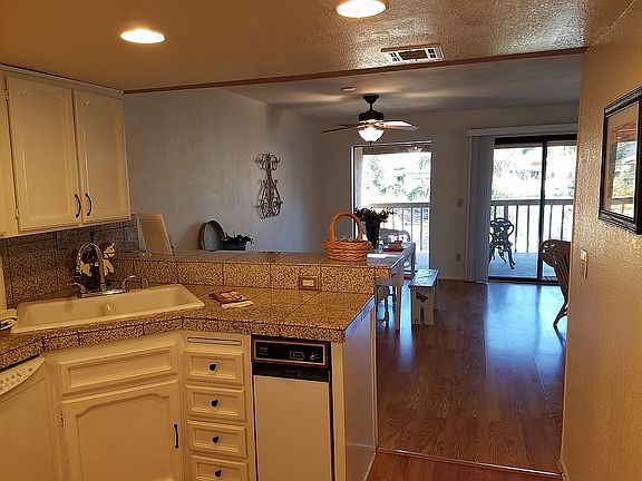 Waterfront CondoVery clean upgraded end unit condo, only one neighbor One car garage, 3 bedrooms, 2.5 baths, newer fixtures and toilets. Newer flooring, granite counters in kitchen, used brick fireplace. Open floor plan with living area on street level and bedrooms upstairs. Nice deck with hugh storage room underneath it. Newly redone pool and spa in complex. Ready for summer fun. Boat dock priviledge comes with unit as well as the pool in complex and Canyon Lake Main Pool. Stackable washer and dryer included in unit in kitchen as well as oven and range, dishwasher and refrigerator. Master suite offers small deck for viewing the lake as well.