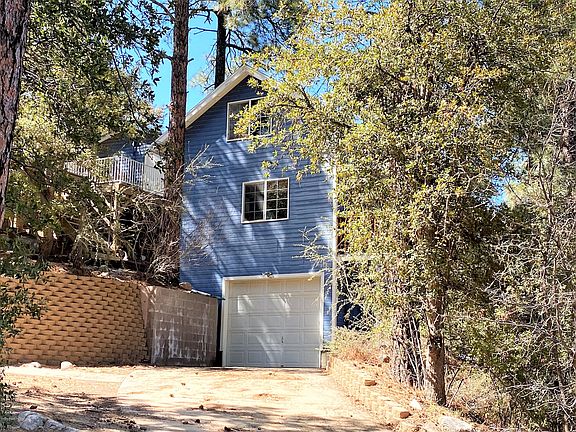 This is an amazing cabin nestled on a hillside, high above the town of Crown King. Inside is what you expect of a remote mountain retreat. Hand made split log stairs & custom railings were made by local craftsmen with local lumber. Lots of natural wood ceilings and floors. Home has electric furnace, wood stove plus a wood fireplace. Large great room plus a massive loft for gatherings. Five bedrooms plus game room (air hockey conveys) & office. Longtime owner has taken wonderful care of this home. Newer metal roof, two decks, Lots of parking, 2 car tandem garage, inside laundry too! All appliances and most furniture conveys. Wonderful views from both the decks. Crown King is a favorite get-away from the big city. Crown King offers lots of trails to hike & bike, nearby lake & local Saloon.
