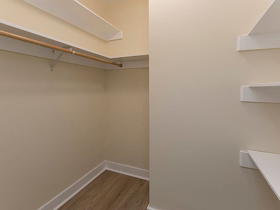 Fresh paintWalk-in closetAmple closet spaceBeautiful crown molding