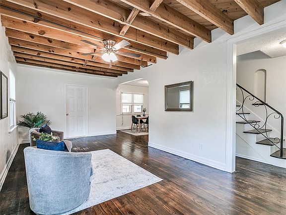 Welcome to this beautifully updated 3-bedroom, 1.5-bathroom home located in a quiet, convenient North Oklahoma City neighborhood! Sitting on two city lots, this property offers an abundance of outdoor space — perfect for relaxing, entertaining, or expanding your garden dreams. Inside, you'll love the character of the exposed wood beams in the living room, paired with modern updates throughout. Enjoy the recently updated downstairs bathroom, new paint throughout, new kitchen flooring, new kitchen faucet, and new back door. The home also features updated windows and a new(er) water heater for added comfort and efficiency. All three bedrooms are generously sized, offering flexibility for guests, a home office, or growing families. Step outside to your own backyard retreat with a large covered back deck — ideal for cookouts or relaxing evenings — plus a spacious storage shed for tools, toys, or hobby space. Located just one block from a park with a walking trail and close to restaurants, entertainment, and shopping, with Downtown OKC only minutes away, this home truly offers the best of both comfort and convenience.