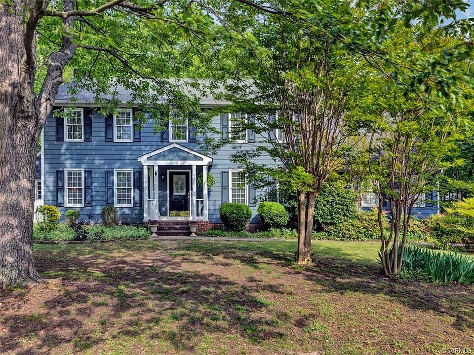 CHARMING TWO-STORY COLONIAL HOME IN ESTABLISHED COMMUNITY ROXSHIRE! Featuring 5 BR, 2.5 BA, sunroom & incredible back deck. Formal dining room offers HDWD floors, chair rail & double crown molding. Office/study is an ideal workspace entering through stunning French doors. Expansive family room showcases gorgeous wood-burning brick FP, built-in features, wainscoting & rustic beamed ceiling. It opens into sunroom exuding heaps of natural light & looking out to new wraparound Trek deck. Kitchen has tile floors, granite counters, bar-seating, breakfast nook & modern board & batten backsplash. Laundry room, 1/2 bath & access to 1- car garage complete the 1st story. Upstairs master suite boasts WI closet & ensuite bath w/dual vanity, tile floors & tub/shower combo. This home offers 4 additional BR's w/large closets & a shared hall BA w/dual vanity. Home interior has been freshly painted and ready for its new owners! Roxshire offers great schools and nicely wooded lots- don't miss out on this great home!