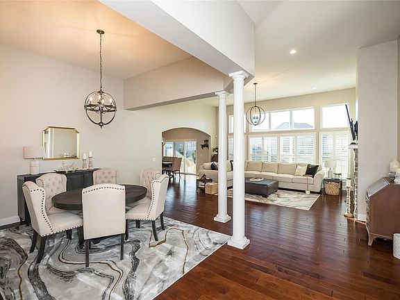 Gorgeous McKelvey home is even better than new w/ plantation shutters, custom paint & many upgrades! Situated in the desirable Villages of Provence and only minutes to Main St. St. Charles & Streets of St. Charles make this an ideal location! Stepping into this home, you will fall in love with the 9' & 12' ceilings on main, gleaming hardwoods, custom lighting fixtures, great room w/ wall of transom windows. The kitchen in this home will make cooking/entertaining a breeze w/ marble backsplash, granite, gas range, large pantry & large center island. Breakfast room leads to amazing outdoor living space offering a flat yard (great for a pool), large patio, pergola, outdoor kitchen features built in grill & griddle. Back inside you have the master bedroom suite w/ luxury bathroom w/ tile and walk in closet. Sitting room divides the other 2 BRs & bathroom. LL has lots of finish w/ rec room, wet bar, 4th bedroom, 3rd full BR & amazing home gym w/sauna, TV & speakers. Some furniture can stay!