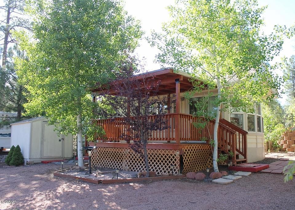 A very clean, well kept and cozy Park Model in White Mountain Vacation Village.15x20 covered deck and lots of trees to enjoy your summer. Plenty of storage inside and a large storage unit outside. Near shopping and Hospital and not far from Fishing, Hiking and Skiing.HOA includes water, sewer, trash service and road maintenance.