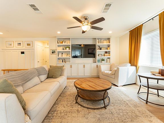 Step into warmth and comfort with this stunning 3-bedroom, 2-bathroom Hanford home, nestled on a 6,615 sq. ft. lot. From the moment you enter, you'll be welcomed by wood-look floors and a light-filled open floor plan that feels both inviting and refined. The living room showcases custom built-ins, perfect for displaying books or décor, while the open layout creates an easy flow into the dining area and kitchen. At the heart of the home, the kitchen features gleaming granite countertops, a spacious island with seating, stainless steel appliances, and bright white cabinetry that blends modern style with timeless charm. The primary suite provides a cozy retreat with a private bath, while two additional bedrooms offer comfort and flexibility for family, guests, or a home office. Step outside to a generous backyard, ideal for relaxing evenings or weekend gatherings. Blending cozy charm with a luxurious touch, this home is move-in ready and waiting to welcome you.