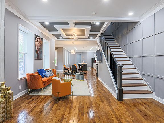 An incredible opportunity to lease this breathtaking, fully renovated and furnished 6-bedroom, 4 1/2-bath townhome with 4,800 sq ft of living space in Historic Reservoir Hill! Features include an open floor plan, hardwood floors, high ceilings, abundant natural light, and elegant chandeliers. The main level boasts a grand entrance, a cozy fireplace, a stunning gourmet kitchen with GE appliances and a 13 ft island, a mud room, wine cellar, and a courtyard. The second level offers four bedrooms, including one with its own ensuite, a balcony, and a laundry. The top floor is dedicated to a lavish primary suite with French doors, fireplaces, walk-in closets, and a luxurious ensuite with a standalone tub and glass-enclosed shower. The fully finished basement features a large bedroom, a bonus room, a full bathroom, and a spacious recreational area with separate entrance. This residence is located not far from Maryland Zoo, Druid Hill Park, close proximity to Ravens and Orioles stadium, Topgolf and just minutes away from highway 83 with access to public transportation. 12 months lease. No smokers. Pets are allowed on case by case basis with additional security deposit and pet rent. Tenant pays for cable TV, Gutter Cleaning, Insurance, Light Bulbs/Filters/Fuses/Alarm Care, Minor Interior Maintenance, Utilities - All Owner Pays: Pest Control, Taxes-Personal Property, Trash Collection