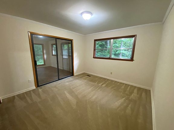 FEATURES: Carport that fits 2 cars, great room with new hardwood floors, exposed wooden beams, fireplace and large windows so that you can enjoy tons of natural light and stunning views of the creek. All of this and the home sits on 1.4 acres! This home has a one of a kind floor plan with 4 bedrooms and an office that could also be used as a 5th bedroom. All of the bedrooms have ample storage space and the office overlooks the creek. Downstairs in the basement is the 1 car garage, laundry area, and a 1 Bedroom Efficiency Apartment with a bathroom and kitchen area. The downstairs basement even has its' own entrance! **PLEASE NOTE: TENANTS ARE NOT ALLOWED TO DRIVE ON/USE THE DRIVEWAY LEADING TO THE GARAGE. GARAGE IS ONLY ACCESSIBLE FROM THE INSIDE OF THE HOME** Please call us today set up a tour to see this great house!