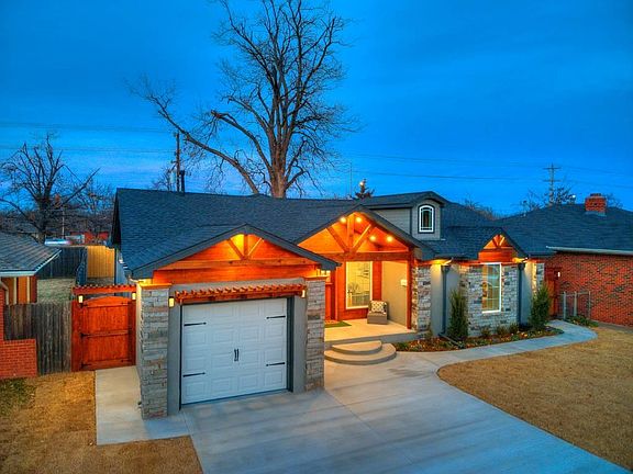This Home will take your breath away WOW. Reborn gorgeous, phenomenal remodeled at one of the hottest locations in Oklahoma City. Open layout, 4" Oak wood flooring, Craftsman Entry Door, Custom oak barn doors, LED lights adjustable power and colors, WiFi dimmer switches for exterior, new stucco and real stone face front, 8 foot fence, Custom gutters with collectible boxes, New HD roof. centralized AFCI breakers, wide drive way, sidewalks and Sod. Custom built in kitchen:Quarts counters ,Wi-Fi smart fridge and stove 8x5 Island with Waterfall design,farm sink, high-end stainless steel plumbing fixtures, Pot filler, spice rack, soft close hinges and tracks. The bathrooms are built with a handpicked Polished porcelain big format, arched ceiling and entries, Double vanity, walk-through closet with gold rose fixtures. 75" smart TV, Kono thermostat,washer&dryer Security cameras ,extra outlets with USB, Low_E windows, Blinds all over, New Heat and Air(Carrier ). make it yours today..