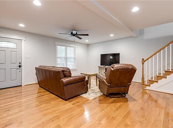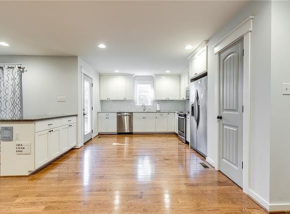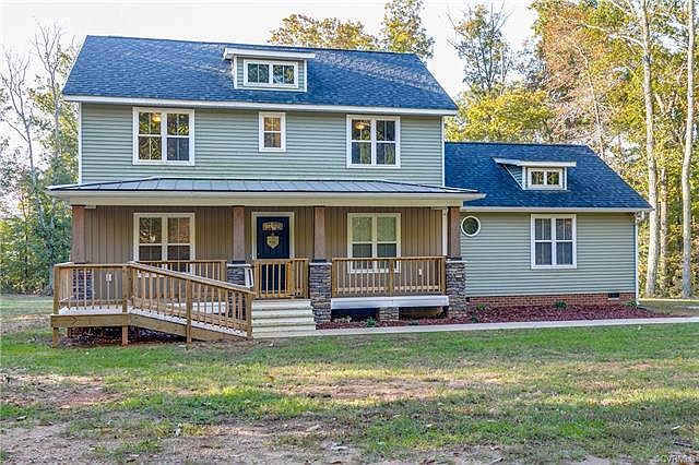 Welcome to 2341 Old Church Rd. Convenient eastern Powhatan location situated on over an acre right behind the Powhatan High School Baseball and Football Fields! Beautiful stone and wood columns are the focal point of this full front porch and lead you into the open concept living area of this home. Bright, spacious living room with hardwood floors, ceiling fan, and recessed lighting. Dual sliding barn doors open up to the dining room with a maple inlay and custom chandelier making it a cozy space to entertain in. The kitchen is adorned with granite counter tops, designer tile back splash, SS appliances, and plenty of cabinet and counter space. First floor master with a maple inlay on the wood floor, ceiling fan, walk-in closet with built in shelving, spa like en-suite with heated floors, dual vanity, separate tub and shower with dual shower heads and gorgeous tile work. Upstairs you'll find 3 spacious bedrooms with large closets, carpet, and ceiling fans. Bonus loft area perfect for an office or rec space and another full bath with dual sinks, granite counter top and plenty of storage finish off the 2nd floor living space. Only minutes from local shops/restaurants!