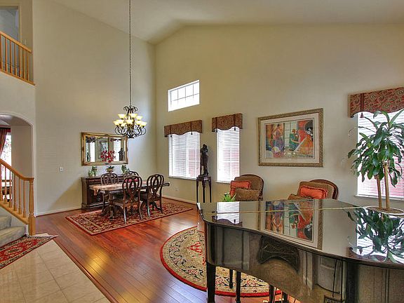 This large elegantly updated newer home features designer touches throughout. The bright and open living room with a fireplace and soaring ceilings has a sweeping grand staircase which leads to four bedrooms on the 2nd floor. The master suite features a vaulted ceiling, marble tiled bathroom with separate tub, shower, dual sinks, and spacious walk-in closet. A guest bedroom and full bath on the first floor can also be used as a home office. The open kitchen features Corian counters, white cabinets, a center island, and pantry with a breakfast area. The family room is centered around a custom built-in entertainment center and leads to the patio. The backyard features a patio shaded with a lovely pergola in a manicured Japanese style garden, and is great for outdoor dining and entertaining. The 2-car garage is lined with storage cabinets proving lots of storage. A convenient indoor laundry room. Within walking distance to VTA Light Rail, close to BART, and easy access to HW680.
