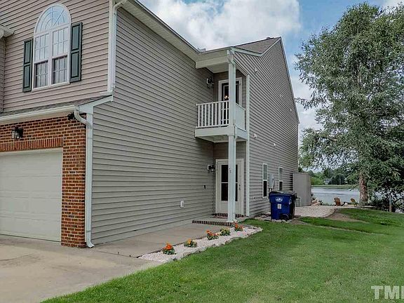 Beautiful, end unit Town home in golf community on Cul-de-sak lot with an incredible landscaped yard and water front views. Tons of light, Laminated vinyl plank flooring, 9 ft ceilings, tile back splash, gas log fireplace, Vaulted ceilings in Master and second bedroom. Dual vanity and garden tub in master bath.Water heater 2013, and new roof in 2017! Enjoy the back deck and outdoors, Walk to the golf course, or the Neuse River Green way Trail. Excellent location, with easy access to 440 and 540.