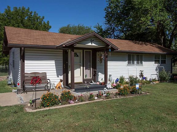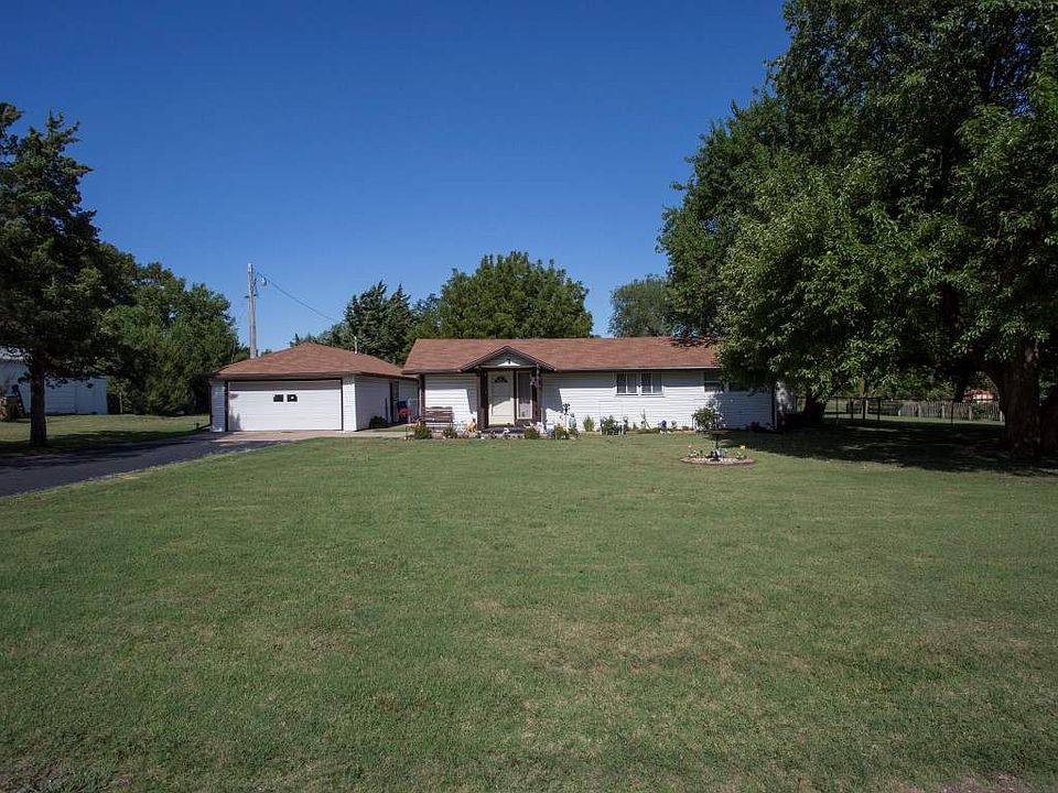 This is a wonderful unique home close to McConnel, Spirit Aerosystems and many large metro area employers. This is a 3 bedroom one bath home, on a wooded lot just short of an acre. The home has the feel of being out in the country, but close to in town and on blacktop road. This is a 1961 contemporary styling home, with vaulted ceilings and south and north window built in to the vault below the roofline. This home has an oversized 2 car garage, with a workshop that could accommodate another car as well in tandem. There is a 1/2 bathroom in the workshop, and there is a well but the seller does not think it works and will not work on it. The home has low maintenance vinyl siding. There is a large concrete patio pad in the front and back yard, for nice picnics and outdoor activities. The home has a nice all weather "mud room" on the back of the home that holds the washer and dryer as well. This home has a storm shelter just a few yards from the back door. The water heater and central air conditioning has been replaced recently. Schedule a time to see this wonderful house and make it your home.