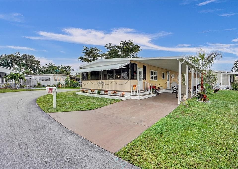 JUST SIT IN YOUR ENCLOSED FLORIDA ROOM AND ENJOY THIS BEAUTIFUL FLORIDA WEATHER. REALLY NICE AND VERY CLEAN LARGE CORNER MANUFACTURED HOME. BEAUTIFULLY AND ALL FURNISHED TURN KEY. TWO BEDROOM (+MURPHY BED IN LIVING ROOM) 2 FULL BATHROOMS. REMODELED BATHROOMS AND UPDATED KITCHEN. TILE THROUGHOUT. NICE COMMUNITY FOR 55+ WITH LOTS OF ACTIVITIES. SMALL PET OK. CLOSE TO RESTAURANTS, SHOPPING AND THE BEACH