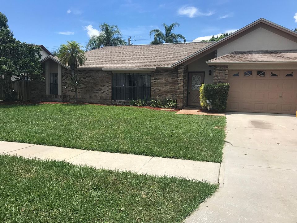 Beautiful and spacious 4 bedroom 2 bath Pool home in Weston Park. Open Floor plan with cathedral ceilings. Large Living/ dining areas. Separate Family room with French doors leading to the covered lanai and sparking pool. Updated Kitchen with wood cabinets and granite counters. Master suite offers walk in closet, walk in shower and direct access to the pool. Inside Laundry room. Two car Garage. Screened pool area and Fenced yard. Centrally located just minutes from Wickham Park, Patrick AFB and the beaches. Close to shopping and fine restaurants. Available April 1st. Pool service included. Application Fee $75 per adult. Lease preparation fee $65. Per Fee: $350 per pet. No Vicious breeds