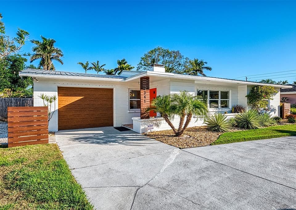 Coastal Charm – TURNKEY Furnished & Fully Renovated! Welcome to this meticulously renovated 3-bedroom, 2-bathroom home, boasting 1,199 sqft. Situated on a stunning ¼-acre lot, this home offers unique features, modern touches, and coastal character throughout. Step inside this charming layout, featuring vinyl plank flooring and a wood-burning fireplace. The updated custom kitchen opens to the dining area and patio creating a smooth flow through the home. The versatile office/bedroom includes a built-in closet with a hidden safe, seamlessly concealed behind closet shelves—an exciting and secure feature that stays with the home! The primary bedroom offers an en-suite bath and walk in closet, while the second bedroom features a built-in closet system for added functionality. This home has been remodeled from top to bottom, ensuring a move-in-ready experience. Complete with public water & sewer, a 1-car garage, and a circular driveway for easy access, this home is truly one-of-a-kind. Additional highlights include: Metal roof (8 years old), newer garage door, whole house hurricane shutters, double pane windows, underground utilities, 30-amp plug for RV storage, 12x24 patio addition for outdoor entertaining, and an original outdoor grill with chimney stack dated back to the 1950’s. Situated in a prime location, this home is walkable to Aldi and top restaurants like Baker & Wife, with bus stops conveniently nearby. Enjoy the best of Sarasota living, less than 2 miles to Siesta Key and just 3 miles to Downtown Sarasota, and Bayfront Park.