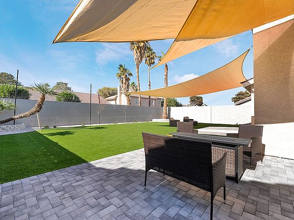 Must See Completely Remodeled Home In Green Valley! 4 true bedrooms. Upgraded kitchen with upgraded oak cabinets, granite countertops, and LVP Luxury Vinyl Plank flooring. Renovated master bath with ceramic tile shower, clear glass shower door and ceramic tile floor. New low maintenance, low water usage, professionally installed front and backyard landscaping. Large backyard with artificial grass and pavers. Covered with beautiful canopies providing plentiful shade. New HVAC Unit. New paint.
