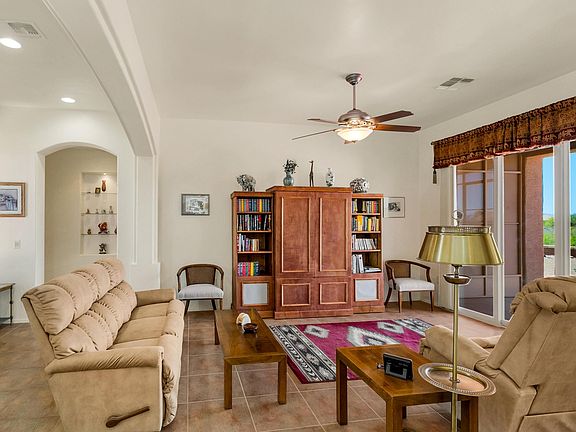 Imagine sipping your morning coffee or tea under the shade in the front courtyard. Step inside through the double entry door to be greeted by a large tile medallion. Off the generous living room are 2 smaller rooms to use as you wish: formal dining room, office, den, hobby room, etc. The master bedroom has a newer AZ room made by TR Ironworks with security screening that allows you to open your bedroom door to let in the evening cool air. The kitchen has a brand new stainless dishwasher and the other stainless appliances are Energy Star. Enjoy your back patio and take in the wildlife, desert and mtn views with no one behind you - just open space! The (freshly painted) garage is large enough to accommodate a 20+' pickup truck. A/C and furnace replaced in 2019, irrigation replaced in 2016.