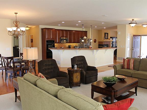 You'll love the private, quiet location of this beautifully upgraded 703 that backs to open space. Spacious & open floor plan. Gas fireplace & entertainment center w/surround sound in living room. Gourmet kitchen w/cherry wood cabinets, under cabinet lighting, marble topped island, wood floors, gas stove & double ovens (1 convection). Gas fireplace in dining room w/wood floors. Main floor office. Comfortable master w/walk-in closet & five-piece bath w/jetted tub. Finished basement family room has entertainment center, fireplace & wet bar w/cabinets, electric cook top, microwave & refrigerator. Basement bedroom has walk-in closet & full bath. Watch deer from private covered deck w/retractable awning & enjoy the nice yard w/mature rose bushes. Several other upgrades including silhouette blinds, plus you will never be bored w/all the events & amenities at the clubhouse including golf, tennis, swimming pools, fitness center & much more!