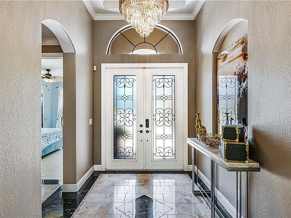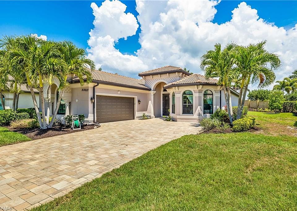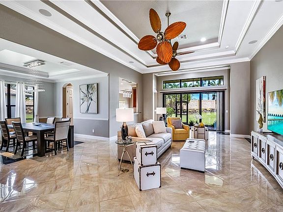 This stunning home, located the quaint gated community of Bonita Lakes, is now available for immediate enjoyment! The open concept floorplan boasts a large great room equipped with with a wet bar and beverage fridge, bright kitchen, and split bedrooms, including a master suite with dual walk-in closets, plus 3 additional bedrooms, wood plank looking tile. The upgraded lighting and trim work offers tasteful finishes. Outside, enjoy the covered lanai space with an outdoor kitchen, and large private backyard, with plenty of space to add a custom pool or extended lanai. This storm ready home comes equipped with impact windows & doors, and natural gas. Bonita Lakes is located on the border of Bonita Springs and Estero, featuring a clubhouse with pool & spa, exercise room, play area, and tennis. Its centrally located between Naples and Fort Myers only minutes from I-75 and only 11 miles from Southwest Florida International Airport.