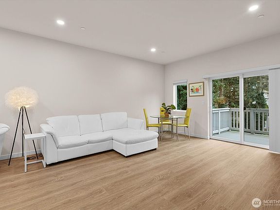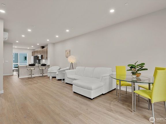Situated in the desirable Edmonds, this like-new DR Horton contemporary townhome has been lightly lived in by its original owner and shows beautifully throughout. Ideally located just minutes from downtown Edmonds, the waterfront, dining, shopping, and major transit routes, this home offers exceptional convenience without sacrificing style or comfort. Desirable floor-plan welcomes you with a bright, open-concept main level featuring a gourmet kitchen with modern finishes, a spacious dining area and a great room that flows seamlessly to a private deck, perfect for morning coffee. Upstairs, you’ll find a primary suite, generous second bedroom and a full bathroom. Updated vinyl plank flooring all throughout home, no carpet! Large tandem garage with additional storage space and driveway parking! With its pristine condition, modern design, and prime Edmonds location, this home delivers the feel of new construction with the added benefit of an established community and move-in-ready ease. Low HOA and community playground. Pre-Inspected and beyond move-in ready!