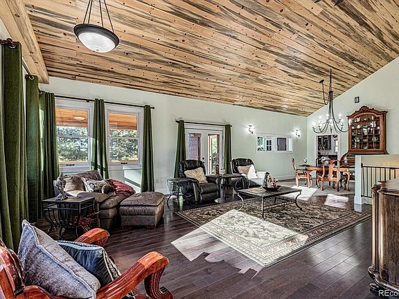 Welcome to Colorado Living at its best! This gorgeous custom-built Ranch Rambler in the Chaparral Subdivision of Deer Trail is in a hilly, heavily wooded area that mirrors mountain living with wildlife galore. This 3,900 sq ft house, 30 X 50 Shop/Garage, and 2 outbuildings are on a 5.04-acre parcel. Inside the Shop, there is a 10 X 10 bathroom with a work sink, shower and washer/dryer hook up where the owners lived while they built their home. Inside the home you'll find 3 beds, 2.5 baths on two floors. The ceilings are 10' throughout the home except for the living room/dining room where the ceilings are vaulted and made of beetle kill-ponderosa pine! You walk in the front door to the mudroom /bathroom with onyx tile floors and continue into the living room/dining room with "Birch" hardwood floors! Continue into the Kitchen and Sunroom where the Maple Cabinets compliment the butcher counters and Mexican Saltillo Tile all of this while viewing the outside of the home though picturesque windows! Your owner's suite features a 5-piece master bath complete with a walk-in closet. Downstairs you'll find a finished walk-out basement with 2 bedrooms, a full bath and great room ready to make it anything you want. Step outside and you'll find that this property is complete with your very own "She Shed" and Chicken Coop. There are endless opportunities to take advantage of on this beautiful piece of land. This home provides a lifestyle that is exclusively Colorado, offering community, convenience, all in a stunning setting. There are just too many features to mention ( see Features Document attached). Do not miss seeing this one-of-a-kind property! You will not be disappointed!