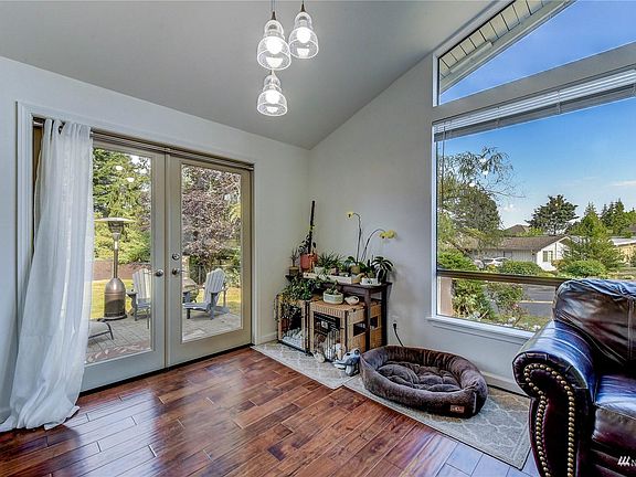 Exceptional light & bright rambler with vaulted ceilings & wall of windows. Home features many updates such as engineered laminate wood floors thru-out, kitchen with quartz counters, ss appliances, pantry, newer gas furnace, water heater & air conditioning. Spacious primary suite with vaulted ceilings, double closet and 3/4 bath. Eating space off the kitchen with access to additional 240 sq ft extra finished room, great space for office/hobbies/play-rm. Covered & lighted walkway entrance, fully fenced rear yard with 2 patios (1 covered), mature trees & shrubs. 2 car garage with built-in cabinets, & utility sink. Located on quiet dead-end street, close to shopping, beaches & award-winning Northshore schools.