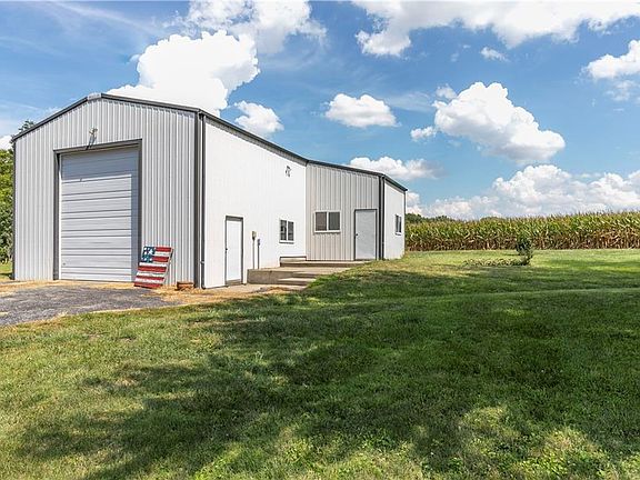 Experience the best of both worlds with this charming ranch-style home...feels like you're in the country, but major highways are still nearby! Perfectly situated on almost 1 acre and backs to endless views of cornfields. The moment you step inside, you’re welcomed with a spacious family room centered around a beautiful brick fireplace. The large kitchen has tons of counter space, cabinetry and stainless steel appliances. Great dining area that overlooks the peaceful backyard and cornfields. The main floor continues, with a full bath and 3 large bedrooms, including a private owner's suite with its own full bathroom. The 2 additional bedrooms are huge and have ample closet space. The basement offers even more living space with a large rec room for games or movie nights, a custom-built wet bar for entertaining, and a versatile room that could serve as a home office, gym, or additional bedroom(non-conforming). OUTDOORS, the property includes a 2-car attached garage and an expansive OUTBUILDING that is sure to impress! This HUGE space boasts a 14-foot door and is large enough for parking an RV!!! This workshop has heating, electricity, plus its own bathroom and attached office space, providing endless possibilities for hobbies, projects, or even a home business. You MUST SEE to appreciate the great spaces and vast outdoor beauty this home offers! (Taxes, measurements, acreage and schools are from public record and not guaranteed. Buyer and Buyer's Agent to verify)