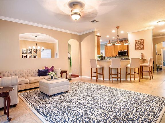 - Interior Features: Ceiling Fans(s), High Ceiling(s), Master Bedroom Downstairs, Split Bedroom, Stone Counters, Walk-In Closet(s), Crown Molding, Solid Wood Cabinets, Thermostat