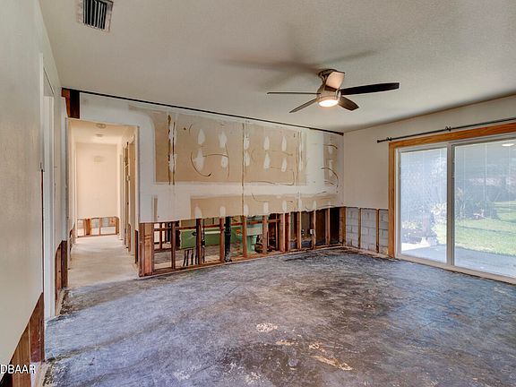 INVESTOR'S DREAM! Concrete Block 4 bedroom, 2 bath, 2 car garage house on a 10,200 sq ft corner lot priced well below market value! This property has no HOA. Conveniently located in central South Daytona, where you can enjoy plenty of shopping and dining destinations. There was water damage from Hurricane Ian due to the City's pump station shutting down. Flooring, lower drywall, lower cabinets, counter tops, and appliances have been removed. Brand new garage door and sliding glass doors. This house has so much potential! Make it yours. The sky is the limit! Square footage received from tax rolls. All information recorded in the MLS intended to be accurate but cannot be guaranteed.