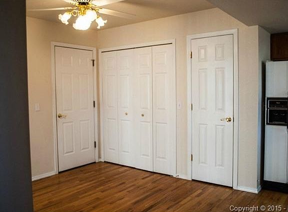 Off the beaten path, very private and secluded complex nestled into a quiet neighborhood in D20. This fabulous townhome backs up to open spaceRampart Park.Enjoy beautiful Pikes Peak views from the main master bedroom and almost the entire northern view of the mountain range from the second master bedroom. Yes, two masters with vaulted ceilings, private baths, and two closets in each bedroom complete the upper level. On the main, the living room has a gas fireplace, vaulted ceilings and plenty of room for your,furnishings to create a cozy ambiance. The dining room allows for quick access into the kitchen and has a walk out to the newly updated composite deck. Great setup for the cook in your family. The kitchen has oak cabinets and flooring, plus there is plenty of counter top space for all your kitchen gadgets as well as a deep pantry. The breakfast nook rounds out the main with oak hardwood, walk out to entry patio, laundry area, and access to garage. The basement has fairly new carpet, can be used as a great family room or a 3rd bedroom junior suite with walkout to back patio. The extra room in basement can serve as a workshop or hobby room.