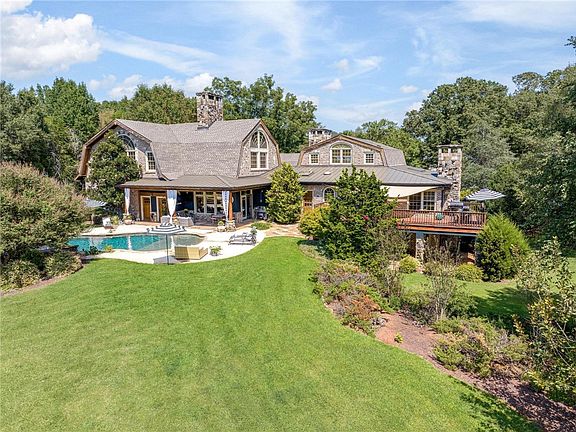 Welcome to this exquisite property exuding rustic elegance, where tranquility and unprecedented comfort unite in perfect harmony. Nestled on a 5.51 acre estate, this home boasts the highest quality craftsmanship and an array of timeless materials, including brick, stone, and wood, seamlessly blended to create a captivating architectural work of art where nature seamlessly melds with luxurious living. As you approach this refuge, you'll immediately notice the artisanal details that define this residence. The exterior showcases a rich blend of brick and stone, complemented by rustic wood accents, setting the tone for the warm and inviting ambiance that awaits within. Twin covered porches adorn the entrance, inviting you to relax and enjoy the flutter of the hummingbirds or curl up with your favorite book. Step inside and be transported to a world of understated luxury. The interior design continues the rustic elegance theme with reclaimed wood beams, exposed brick walls, and hand-crafted stone fireplaces. The open-concept living spaces are bathed in natural light, creating a welcoming atmosphere for both intimate gatherings and grand entertaining. The heart of this home is a gourmet kitchen, a chef's dream with top-of-the-line appliances, custom cabinetry, and a center island that invites culinary creativity. There are multiple options for dining, providing the perfect setting for enjoying meals with family and friends. Retreat to the master suite, a private oasis of comfort and serenity. The en-suite bathroom features luxurious finishes, a cast iron soaking tub, and a walk-in shower with dual shower head, offering a spa-like experience ensuring that every moment spent here is one of pure indulgence. Two walk-in closets provide ample storage, while a cozy fireplace and custom built-in bookcases add a touch of sophistication and warmth. Enjoy sunsets from the adjacent deck, overlooking the beautifully landscaped yard and pool area. Ascend to the rear upper level, where a loft area awaits, perfect for a home office, quiet reading nook or contemplative yoga space. Well-appointed bedrooms with a shared bath offer privacy and comfort to family and guests alike. The third guest room is in the front upper level, with en suite bathroom and beautiful views of the property. Venture to the terrace level, and you'll find an additional living area designed for relaxation and entertainment. Another fireplace graces this space, creating a cozy ambiance for gatherings and leisurely evenings. The exterior of this remarkable property is equally captivating. A covered patio, overlooking the sparkling saltwater pool, provides the ideal setting for al fresco dining and lounging. Whether you're basking in the sun or stargazing at night, this outdoor oasis offers a serene escape from the everyday. The meticulously landscaped grounds offer a private setting surrounded by nature's beauty, providing a serene backdrop for relaxation. This property offers a rare combination of tranquility, comfort, and exceptional craftsmanship. With over 6,000 square feet of living space, including multiple bedrooms, office spaces, a finished terrace level, five fireplaces, a saltwater pool, and a private country setting, it represents the epitome of serene and luxurious living. Located between Lake Hartwell and Lake Russell in Hart County's beautiful countryside, shopping and restaurants are just minutes away in Historic Downtown Hartwell. Whether you are searching for a primary residence, vacation home or corporate retreat, the attention to detail and quality craftsmanship make this property a truly unique and charming haven.