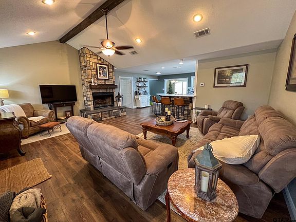 - Fireplace features: One Wood Burning, Blower Fan, Stone