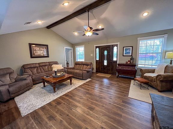 A must see! Recently updated 4 bedroom and 2 bath home on 5 treed acres, just minutes from the boat ramp of beautiful Lake Cypress Springs. This home embodies the perfect blend of rustic charm and modern conveniences. The spacious family room, with vaulted ceiling and floor to ceiling wood-burning fireplace with blower, create the warm and cozy ambiance of a country retreat. Recent updates include new paint and light fixtures inside and out and new laminate and tile flooring throughout the home. The gourmet style kitchen includes lots of cabinet space and new quartz countertops and sinks throughout the house and new microwave, dishwasher, and disposal. The spacious master suite includes a seating area and the master bath includes an oversize tile shower, double vanities and a large walk-in closet. A large mudroom provides a convenient transition from the outdoors to the comfort of home with new custom cabinets, countertops, and flooring. This practical space offers ample storage for coats, shoes, and outdoor gear, keeping clutter at bay and maintaining the pristine beauty of the interior. The combination sunroom/family room and dining area overlook the pool and other outside amenities. Relax and have a cup of coffee on the full length covered front porch or just hang with friends and family out back, where the saltwater pool beckons on hot summer days, offering a refreshing escape from the heat. Lounge on the poolside deck, bask in the sun, or take a refreshing dip – the possibilities are endless in this private paradise. Adjacent to the pool, a concrete patio surrounds a fire pit, creating the perfect setting for cozy evenings under the stars. An additional 1200 sf detached garage/shop provides covered parking and/or a large workshop and a beautiful “she shed” offers unlimited opportunities for hobbies or crafts. Give the listing agent a call today to schedule your private showing. Available 7 days a week.