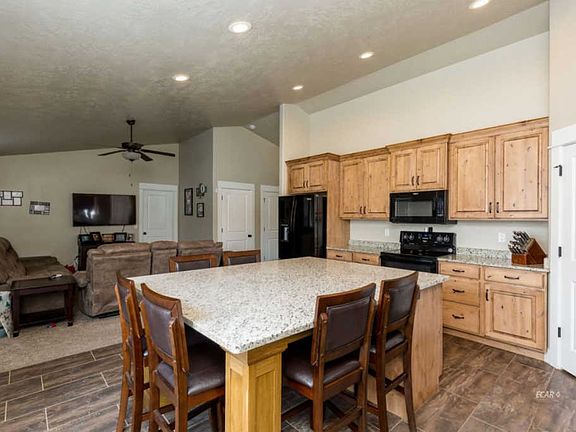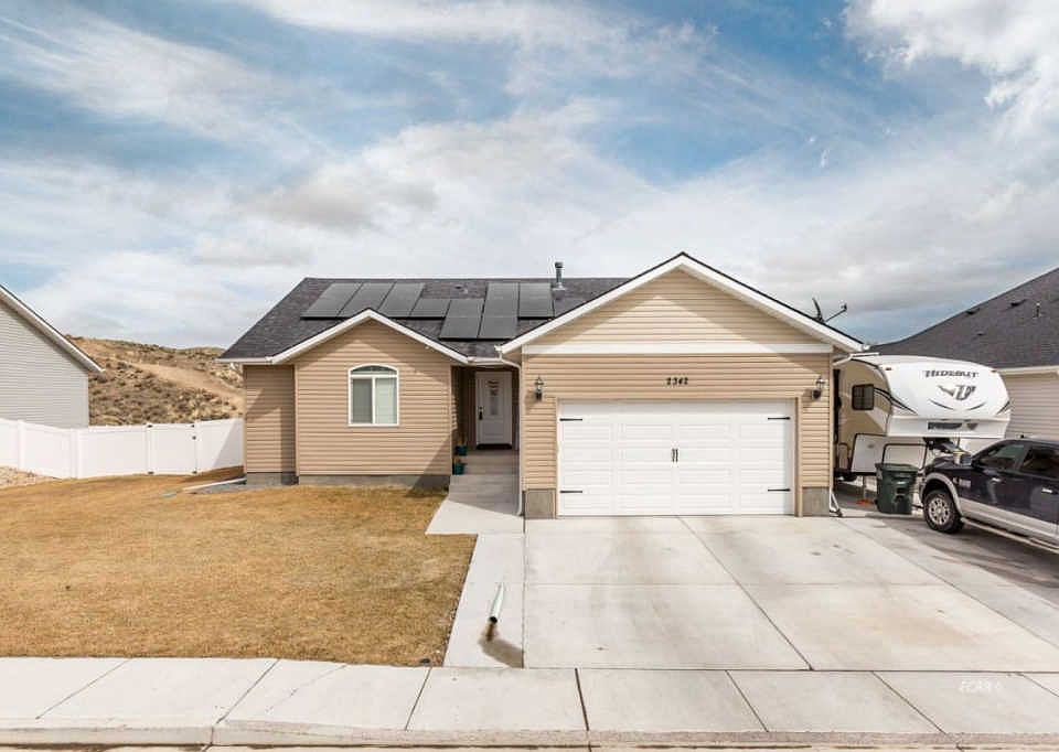 Beautiful 5 bed 3 bath 2746-SF home sitting on a .25 acres waiting for you! Huge RV parking, fully landscaped, vinyl fencing, sprinkler system and massive composite deck off the back the full length of the home.. Kitchen features a new oversized granite slab that provides dining for 6 or more, pantry and all appliances will stay. Master retreat with vaulted ceilings fully tiled walk-in shower, large walk-in closet and private commode. 3 bed 2 bath on the main level, basement has 2 double sized bedrooms, spare room with no window fully finished for whatever you can imagine, open and light family room and a full bath. Recently installed solar has cut the current owners power bill to almost nothing. Our favorite features of this home are the awesome kitchen and the great location with a nice views of the Ruby Mountains.