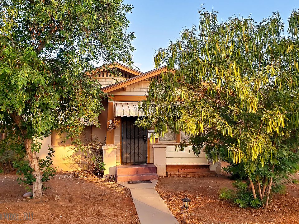 Single family home, 2BR, 1 1/2 Bath, in historic Coronado. New appliances include 20cf Refrigerator, Gas Stove, and Dishwasher. Washer and Dryer (Gas or Electric) hookups in the dedicated laundry. Open layout ,kitchen attached to the Dining/Family Room, vaulted ceiling, Saltillo tile floors. New floors in the bedrooms, bathroom, and living room. Ceiling fans throughout. Enclosed yard with pedestrian and driveway gates, and porch. The exterior will continue to be improved. Historic Coronado is a developing arts district in a great location near downtown Phoenix with access to highways SR51 and US10, providing good transportation options to the Phoenix Metro Area. It is close to three major hospitals, the light rail line, many great restaurants, venues, local businesses, and good schools. An Outdoor Pool, Tennis Courts, Basketball Court, Baseball Field, and Picnic Areas are located three blocks away at Coronado Park. Art is on display throughout.