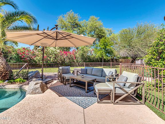 BACK ON THE MARKET with over $60,000 worth in upgrades/improvements!!! NEW resurfaced pool, NEW roof on main house and gazebo, NEW AC, NEW water heater!!! This is a move in ready and gorgeous custom home located in the highly sought after Spyglass Estates! On almost a full acre this property is one of a kind. Lush private backyard on flood irrigation with a heated pool, putting green, ramada, RV pad with all hook-ups and a variety of citrus trees. The gourmet kitchen is open and bright and offers gorgeous granite counters, tons of custom built cabinets and high end appliances. Split floorplan with the primary suite and 3 bedrooms on one side and a private guest retreat on the other side. Surround sound throughout the house! And then the hidden gem of the property...the newly built casita with a completely private and separate backyard. Custom attic space above the garage with stable flooring provides quite a bit of additional storage. All sheds on property convey as well. CAT 6 ethernet wiring throughout main house and casita. Most furniture and game tables available on separate bill of sale. Come see this one of a kind Mesa gem for yourselves!
