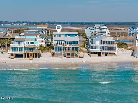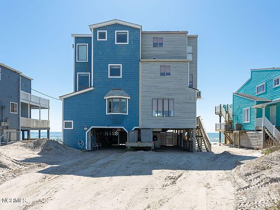 Welcome to your dream coastal retreat! This beautifully decorated townhouse is nestled directly on the pristine shores of North Topsail Beach, offering breathtaking ocean views and the soothing sound of waves crashing. Immerse yourself in the ultimate beachfront lifestyle with direct access to the sandy beach just steps from your door. Start your mornings with a refreshing stroll along the shoreline or unwind with a picturesque sunset walk. Step inside and be captivated by the coastal inspired decor that creates a relaxed and inviting atmosphere. The interior design seamlessly blends modern elements with beach-inspired accents, offering a perfect blend of comfort and style. The open-concept layout allows for seamless flow between the living room, dining area, and kitchen. Wake up to panoramic ocean views from the master bedroom or enjoy a cup of coffee on your private balcony while taking in the mesmerizing sights and sounds of the sea. The townhouse features 2 decks and a lower level deck with a hot/cold shower. Recently renovated/remodeled kitchen with fresh paint, open shelves, new countertops, hardware and all new stainless steel appliances. All 3 bathrooms renovated with subway or marble tile. New stair runners, light fixtures and ceiling fans throughout, bamboo shades on first and second level and new washer and dryer.