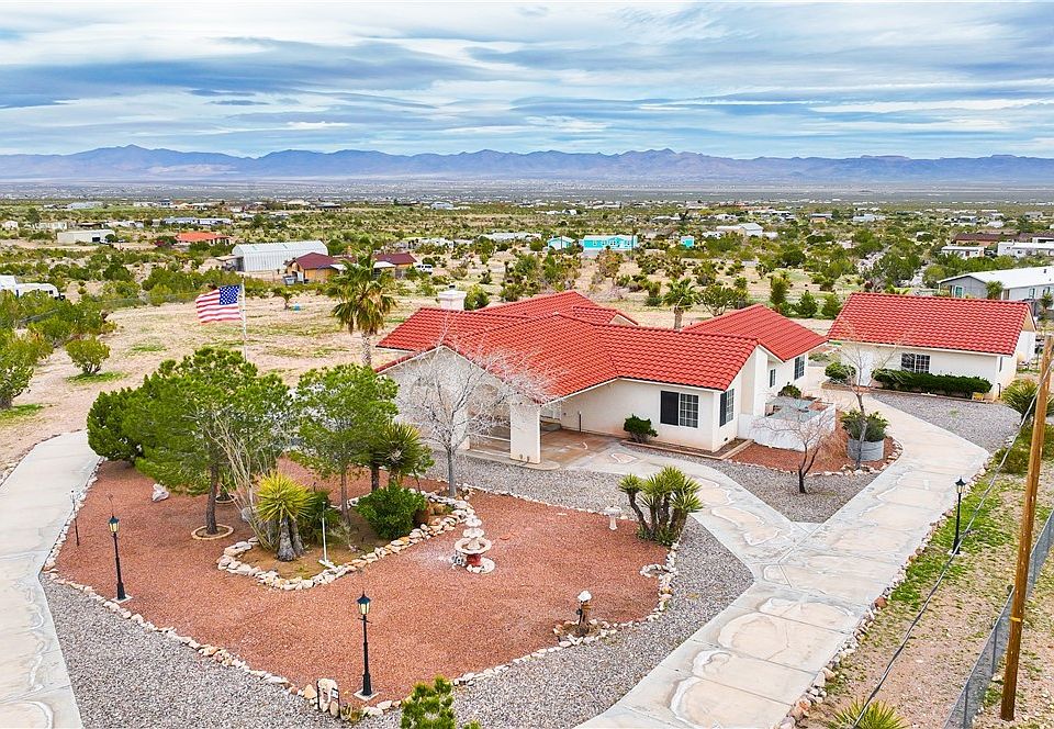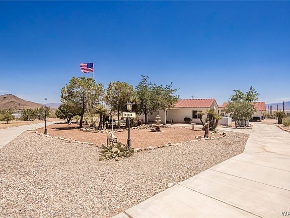 Looking for that peaceful GEM IN THE DESERT home with room to roam? Come check out the impeccable 2,211 sf 3 bed 5 bath home that sits on a palatial 2.35 acres of pure relaxation. This home was custom built by the owner so the minute you step inside you will notice the many upgraded features & pride of ownership. This home is nestled at the base of the Black Mountains, so you get panoramic sunrise & sunset mountain views from every angle, & you are only 900 feet from paved roads. This one owner home is fully fenced with automatic entry gate, circular driveway, & a covered front entry into this meticulously maintained home. The home & the detached garage has 2x6 insulated exterior walls, 9 foot insulated ceilings, carpet & tile floors throughout, central heat & a/c, evap cooler, attic exhaust fan, 5 gpm well, insulated copper plumbing & central vacuum. The kitchen area features solid oak cabinets, skylight for added natural light, kitchen island with prep sink, & large breakfast bar. All 3 bedrooms are spacious in size & each one with an adjoining en suite bathroom. 2 of the bedrooms even have walk in closets. The primary bathroom features a soaking garden tub, walk in shower, & his & hers vanities. The living room is large & perfect for entertaining with its built-in entertainment center, while the formal dining room/family room has a free-standing wood burning stove. Additionally, there is an in-house laundry room, patio with gas hookup, intercom system, & ceiling fans throughout. The 25x25 oversized detached garage is fully finished, has 220 electric, shop sink, & full bathroom with shower. The 2.35-acre property is fully fenced with mature trees & greenery, motion activated lighting, green house, & breathtaking views of all the surrounding beauty. You even have your own private golf chipping range when you buy this home. This home is located in Golden Valley, AZ which is the ideal location as its minutes each way to the bright lights of Laughlin, NV & the Colorado River or the shopping & conveniences of Kingman, AZ. At approximately 2,700 feet of elevation, you can enjoy those cooler summer temps & snow-covered mountain views in the winter. This is a once in a lifetime opportunity to own one of the nicest Golden Valley homes & properties, so stop by & take a look at this GEM today!