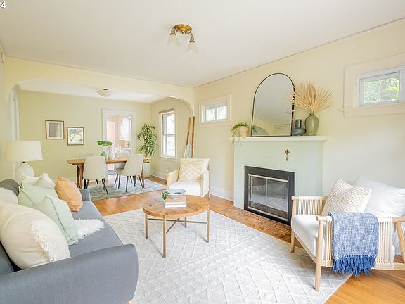 Situated on a lovely tree-lined street just one block off of hip Division Avenue, you'll find this charming property that's packed with features. Original wood floors and a gas fireplace greet you as you step through the front door into the bright living and dining rooms. The kitchen offers upgraded appliances, fresh paint, and a sweet breakfast nook for entertaining guests while cooking. Down the hallway, find two comfortable bedrooms and a renovated bathroom with marmoleum flooring and period features. Utilize the basement level as a workshop or potential additional living space with its own minisplit head, seismic retrofitting, and built in lighting. Enjoy summertime dinners outdoors on the private patio surrounded by mature plantings. Careful stewardship with environmental care throughout, including a newer minisplit heat pump with cooling, tankless hot water heater, upgraded electrical and service, and additional insulation by Greensavers. This location can't be beat: Salt and Straw, Bollywood Theater, PDX Sliders and more are just a block away. Walk score of 96, bike score of 98, and rare energy score of 10! [Home Energy Score = 10. HES Report at https://rpt.greenbuildingregistry.com/hes/OR10229513]