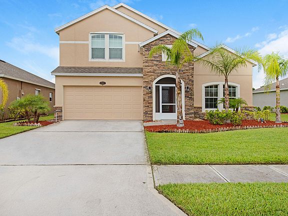 Your Dream Home Awaits For You-- This beautiful 2016 Biscayne Model is situated on a lake with spectacular views! Master Bedroom is located on the ground floor. Master Bath with double sinks, large walk in closet and oversized, tile walk in shower. Gourmet kitchen with granite counters. 42'' cabinets & walk in pantry w/under stair storage. Formal Dining Room. Kitchen opens to the Family Room that leads to the trussed covered porch. 3 Bedrooms and a large loft upstairs.Enjoy the back yard in covered patio with privacy screen, full irrigation and privacy vinyl high end fenced in backyard. Home has a great elevation with stone facade and upgraded landscaping along with beautiful curb appeal. This home is priced well and ready for new owners. Make an offerDirections: West on Malabar Ro