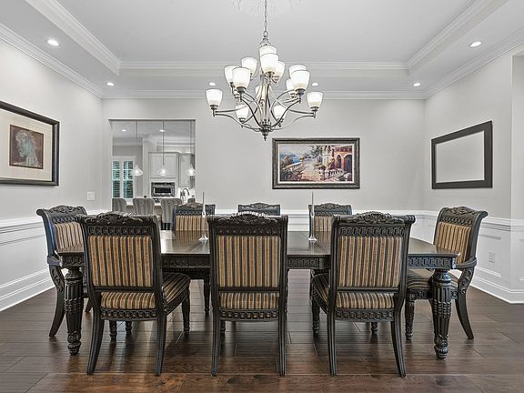 WOW Bella Casa home w/ 3 car garage & every upgrade imaginable on wooded homesite. Brick front w/ stone accents, covered porch & double mahogany front door accentuate curb appeal. Hardwoods thru main level. Extensive millwork throughout including wainscoting, crown molding, tray ceilings, built ins & decorative accent walls. Large dining room perfect for large gatherings. Huge kitchen w/ center island, quartz countertops, brick laid tile backsplash, walk-in "hidden" pantry & stainless steel GE Monogram appliances including built in refrigerator, commercial gas range, custom range hood & wall oven/microwave. Oversized family room w/ raised hearth gas fireplace. 1st floor guest suite w/ full bath. Impressive primary suite w/ huge walk in closet that features "hidden" office & opulent bathroom w/ soaking tub, walk in shower & double vanity. Ample sized secondary bedrooms upstairs all with direct bath access. Awesome bonus/media room w/ custom built ins. Sun soaked sitting room leads to large deck overlooking private yard with mature tree-line. Electrical upgrades galore including whole house Generac generator!